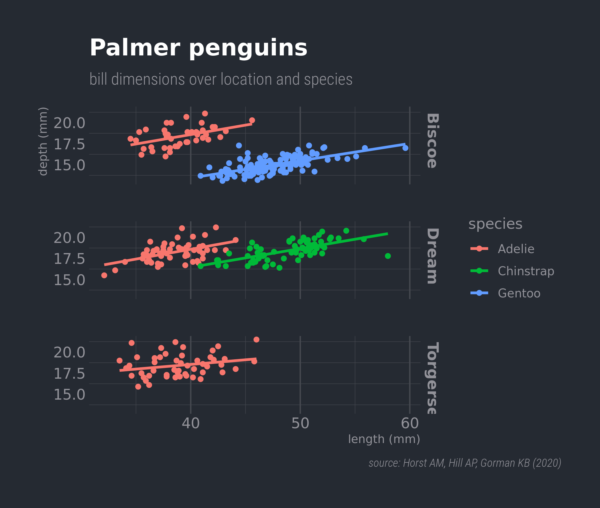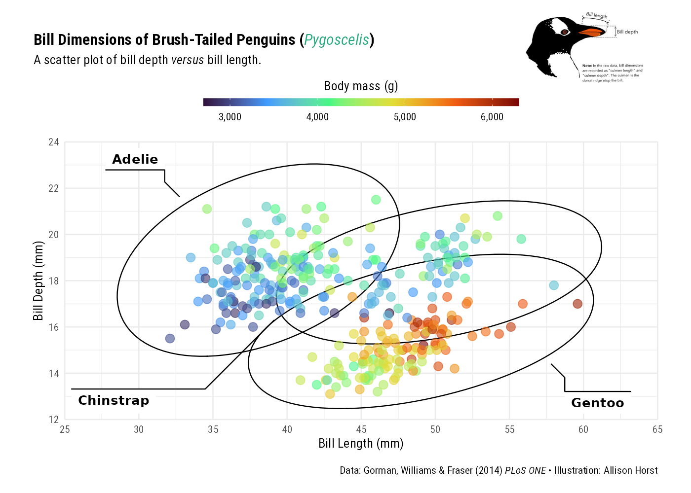 labs(caption = "Data: Gorman, Williams & Fraser (2014) *PLoS ONE* • Illustration: Allison Horst") +